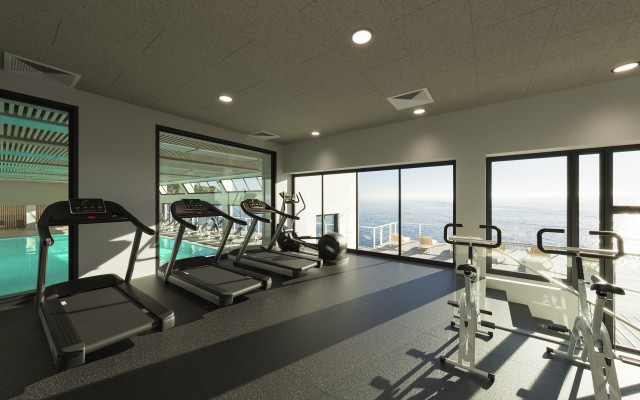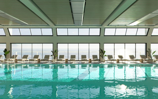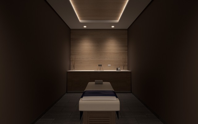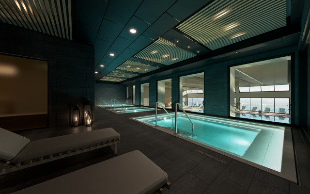 Rendering of the future look of the wellness and spa interior. Graphic design of floor plans of wellness, spa and adjacent accommodation.